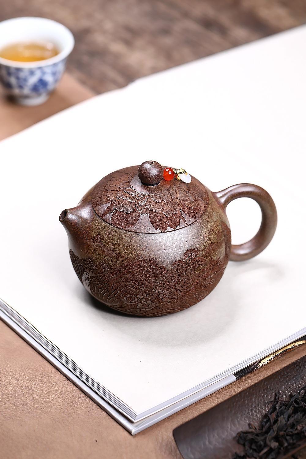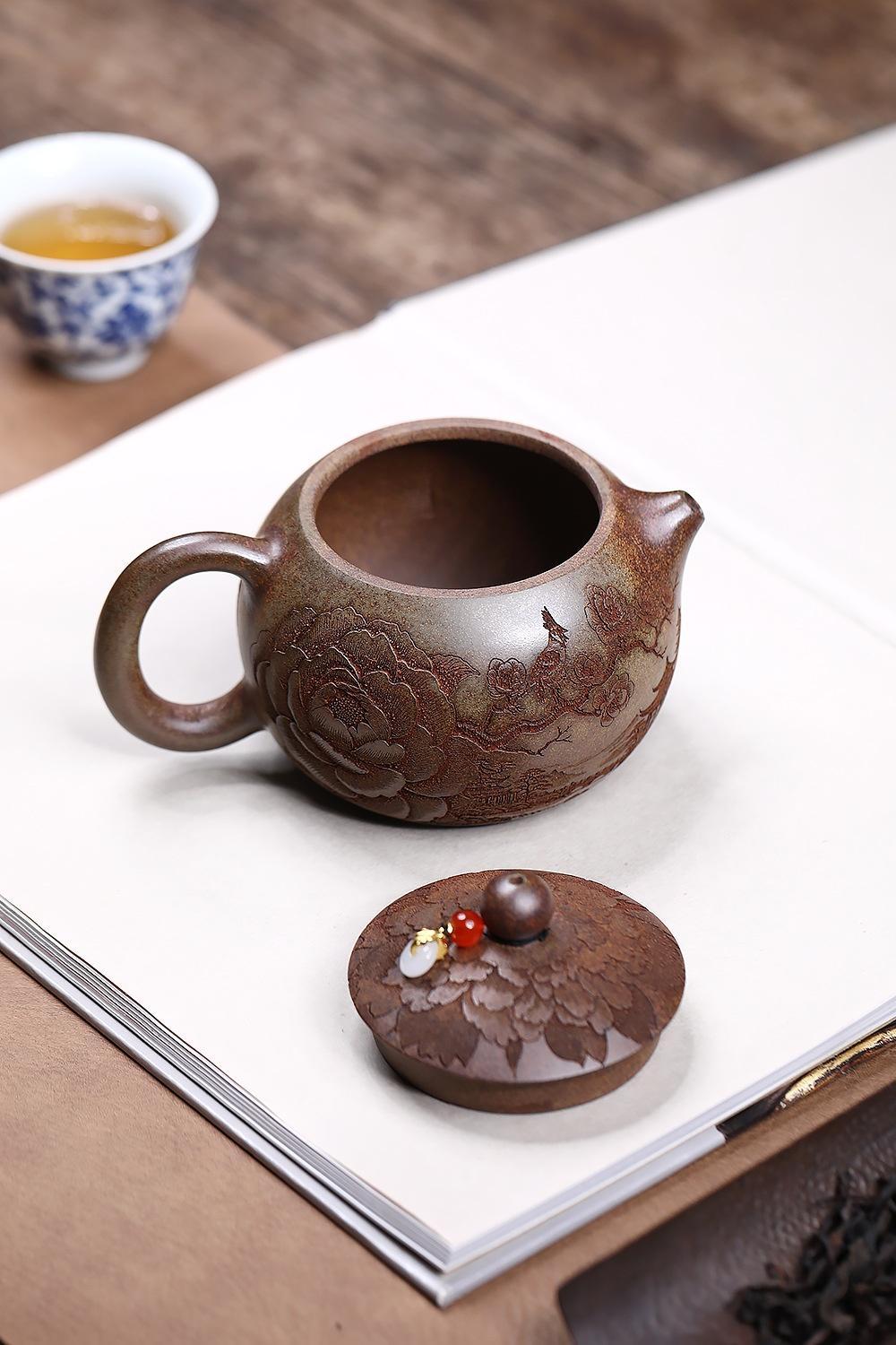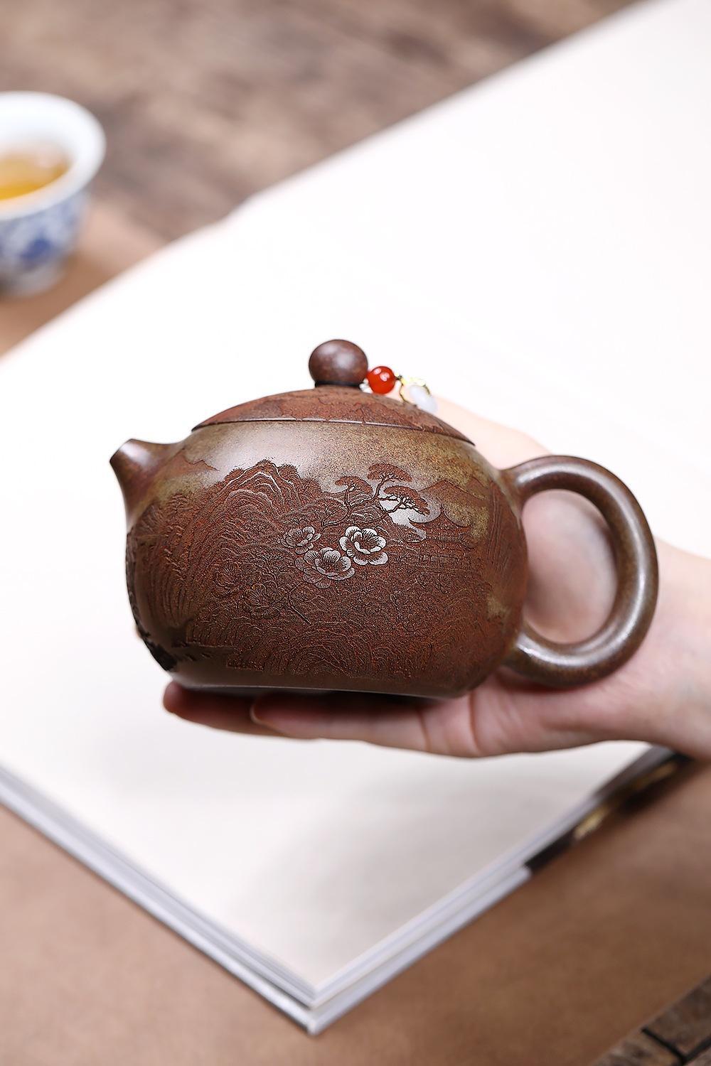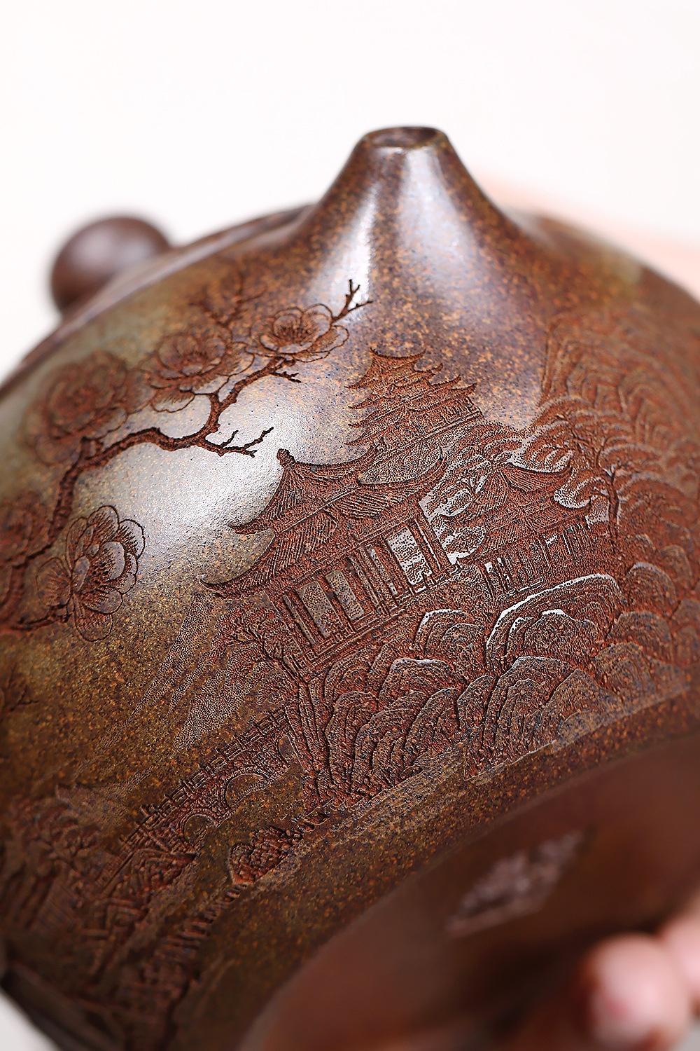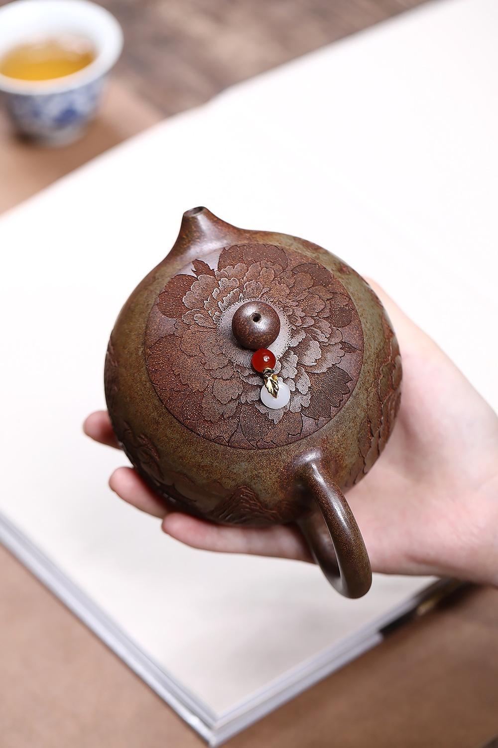 經典傳承・匠心打造|【大師純手工紫陶鳳鳴壺】復古跳刀紋漢瓦壺(一壺兩杯)・黃金大容量300cc + 球孔過濾,鳴音設計顯格調