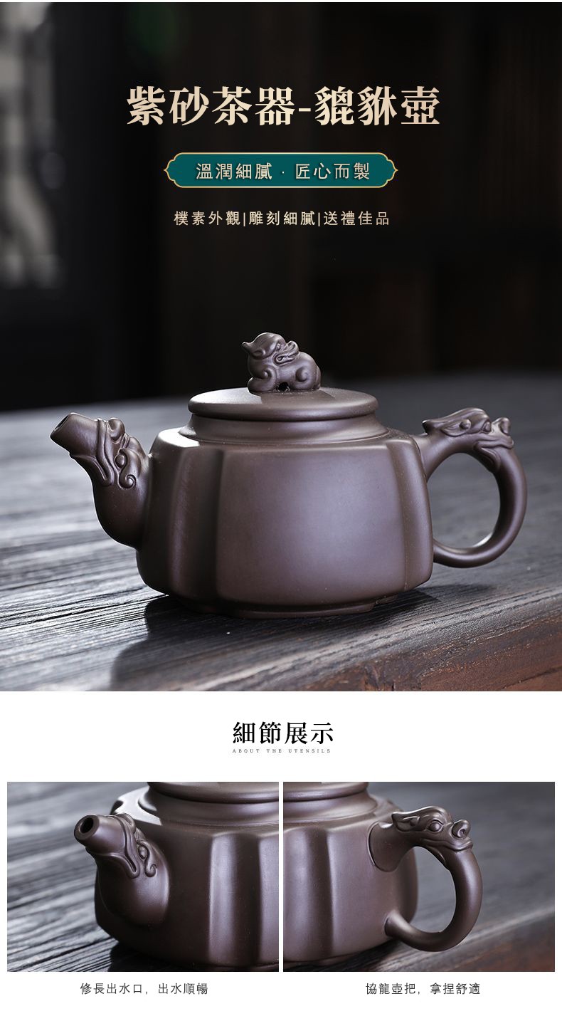 半小時前宜興紫砂壺原礦紫泥四方龍尊茶壺,尊貴與典雅的生活儀式,八方新氣藝術佳作 - 紫砂貔貅壺(260ML)--贈兩杯