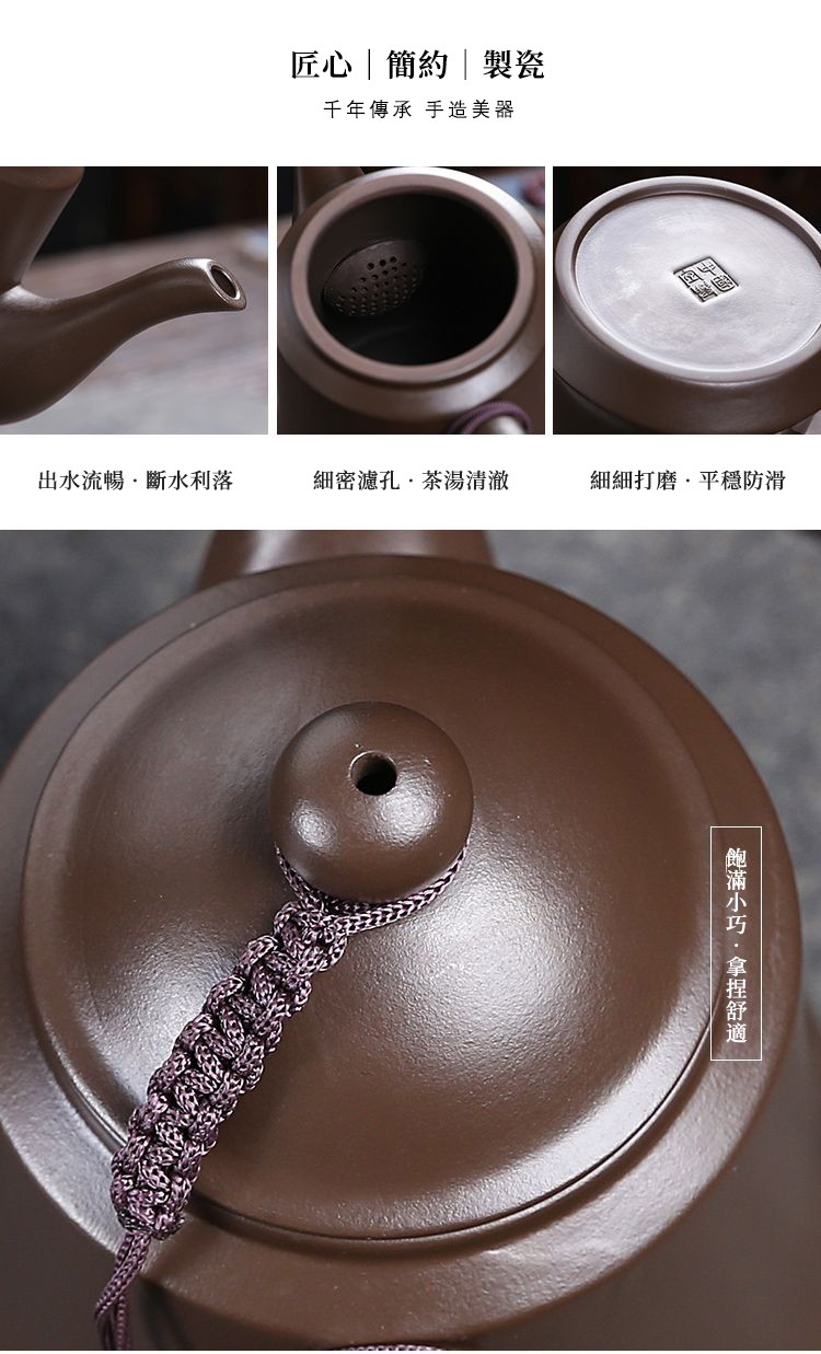經典傳承・匠心打造|【大師純手工紫陶鳳鳴壺】復古跳刀紋漢瓦壺(一壺兩杯)・黃金大容量300cc + 球孔過濾,鳴音設計顯格調