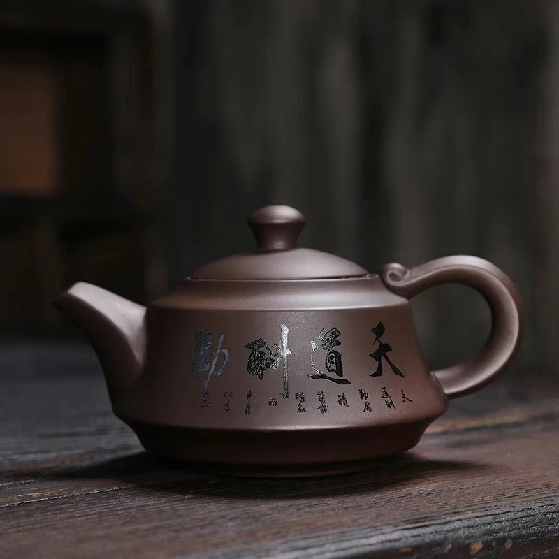 15分鐘前宜興紫砂壺原礦紫泥四方龍尊茶壺,尊貴與典雅的生活儀式,八方新氣藝術佳作 - 紫砂如意壺-天道酬勤(240ML)--贈兩杯