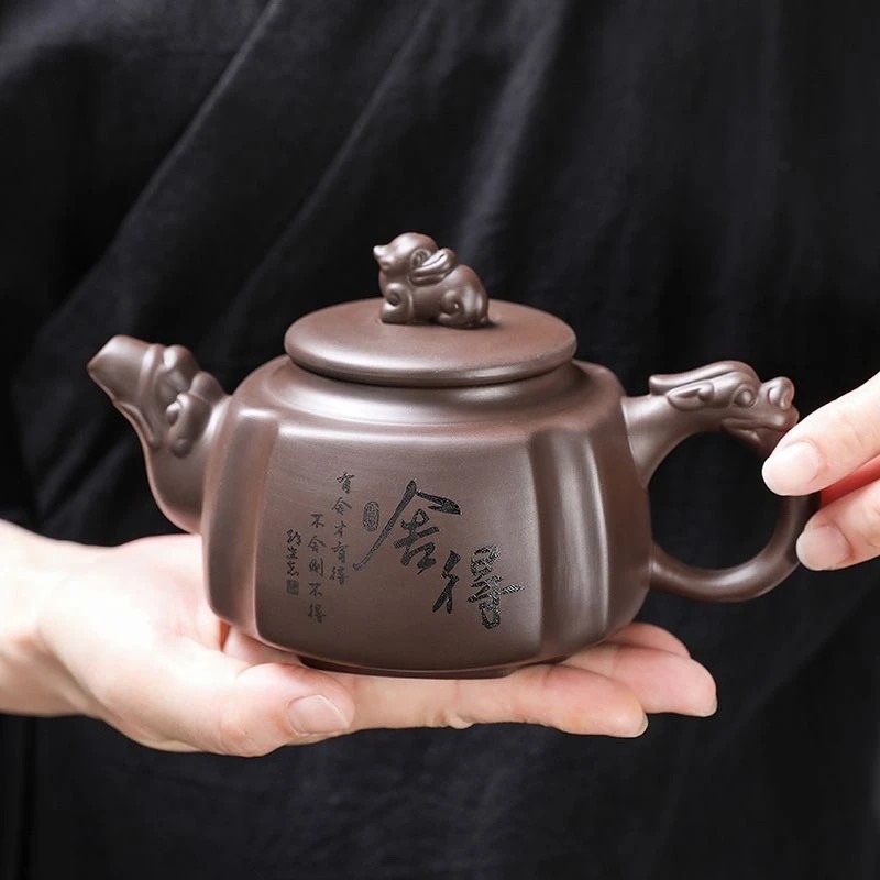 2分鐘前宜興紫砂壺原礦紫泥四方龍尊茶壺,尊貴與典雅的生活儀式,八方新氣藝術佳作 - 紫砂西方龍壺-捨得(280ML)--贈兩杯